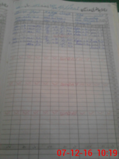 | CNIC | Full Name | Designation | R/C | Absence During Last Calender Month |