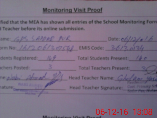 | EMIS Code: 36130134 | Name of School: GPS SADDAR PUR MULTAN MOUZA SADDAR PUR MULTAN | |||