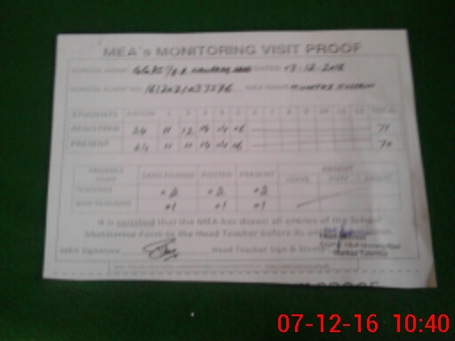 | Attendance Register | Head Teacher | MEA with School | Visit Proof |