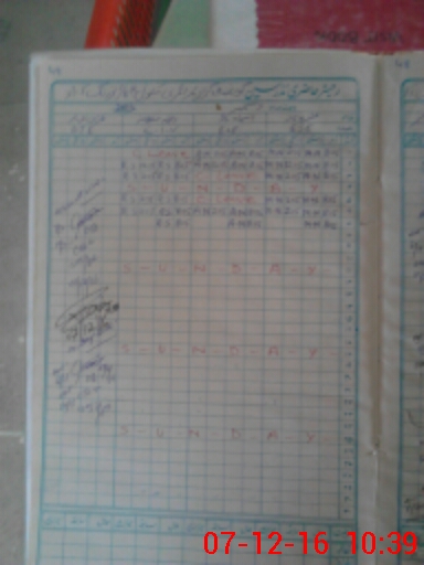 | CNIC | Full Name | Designation | R/C | Absence During Last Calender Month |