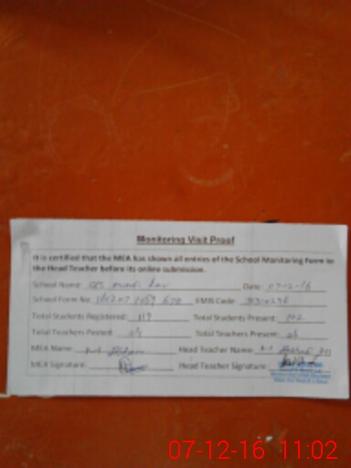 | Attendance Register | Head Teacher | MEA with School | Visit Proof |
