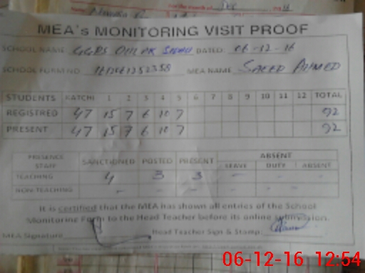 | Certified that this School was Inspected by the Undersigned MEA/DMO Today and the Information Stated Above is as Per Record. | |||||