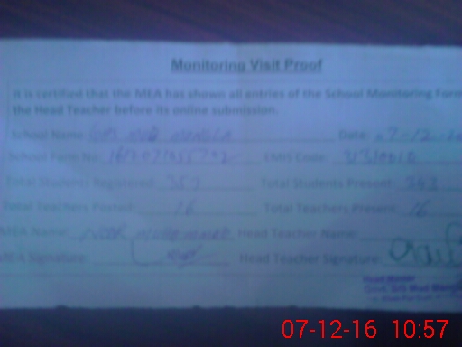 | Attendance Register | Head Teacher | MEA with School | Visit Proof |