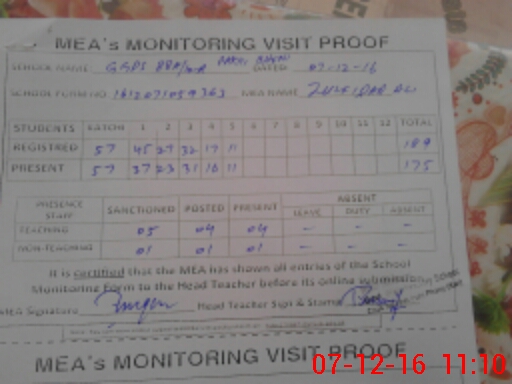 | Attendance Register | Head Teacher | MEA with School | Visit Proof |