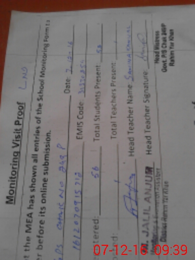 | Certified that this School was Inspected by the Undersigned MEA/DMO Today and the Information Stated Above is as Per Record. | |||||