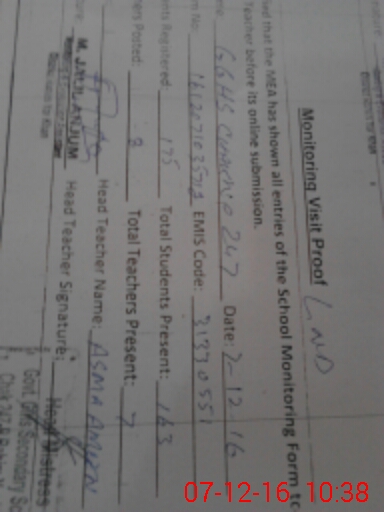 | Certified that this School was Inspected by the Undersigned MEA/DMO Today and the Information Stated Above is as Per Record. | |||||