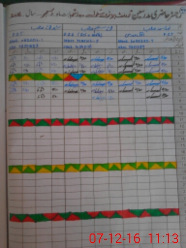 | CNIC | Full Name | Designation | R/C | Absence During Last Calender Month |