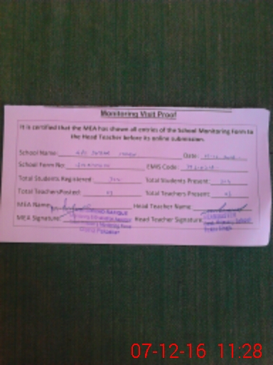 | Attendance Register | Head Teacher | MEA with School | Visit Proof |