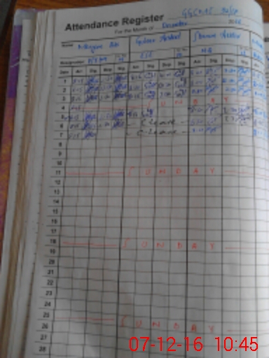 | CNIC | Full Name | Designation | R/C | Absence During Last Calender Month |