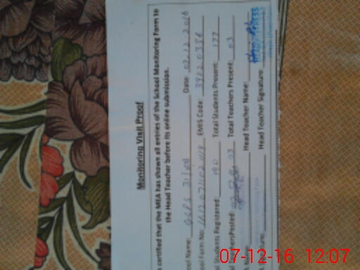| Certified that this School was Inspected by the Undersigned MEA/DMO Today and the Information Stated Above is as Per Record. | |||||