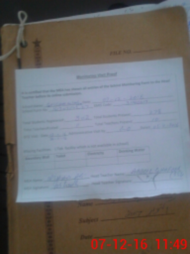 | Certified that this School was Inspected by the Undersigned MEA/DMO Today and the Information Stated Above is as Per Record. | |||||