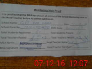 | Certified that this School was Inspected by the Undersigned MEA/DMO Today and the Information Stated Above is as Per Record. | |||||