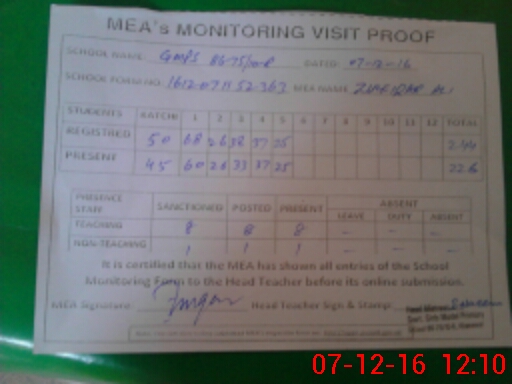 | Certified that this School was Inspected by the Undersigned MEA/DMO Today and the Information Stated Above is as Per Record. | |||||