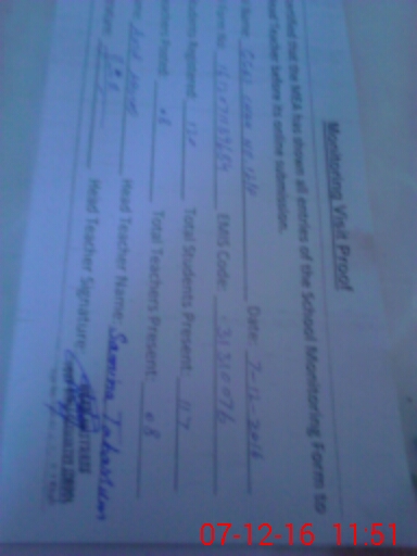 | Attendance Register | Head Teacher | MEA with School | Visit Proof |