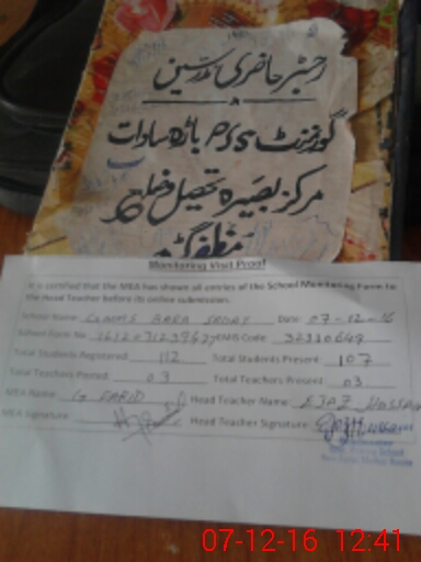 | District: MUZAFFARGARH | Tehsil: MUZAFFARGARH | Markaz: BARA SADAT- MALE | Level: Primary | |