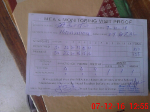 | Attendance Register | Head Teacher | MEA with School | Visit Proof |