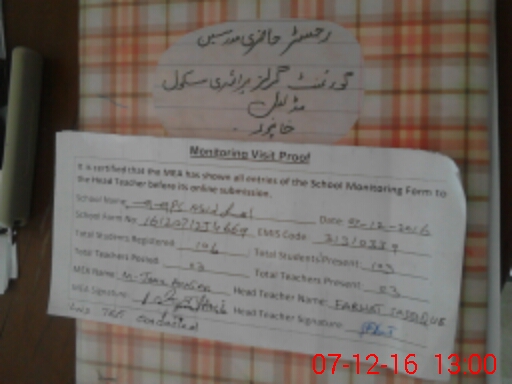 | EMIS Code: 31310339 | Name of School: GGPS MUD LAL | |||