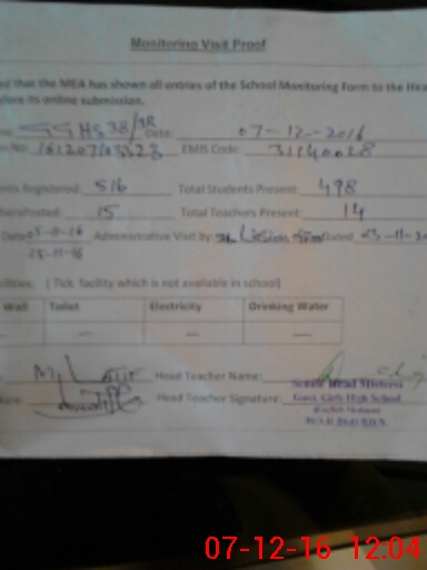| EMIS Code: 31140028 | Name of School: GGHS CHAK NO.38/3-R | |||