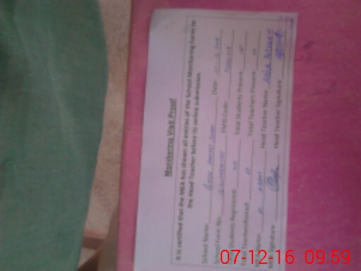 | Attendance Register | Head Teacher | MEA with School | Visit Proof |