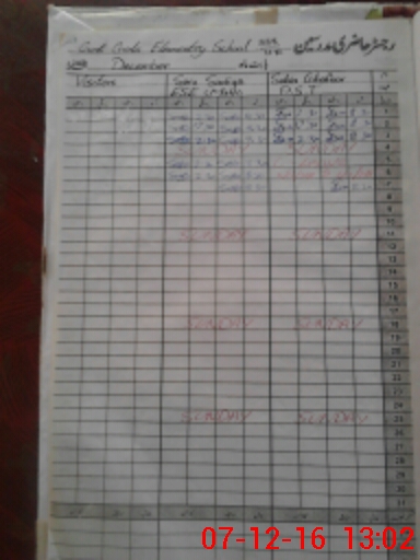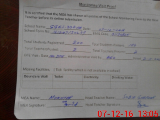 | Attendance Register | Head Teacher | MEA with School | Visit Proof |