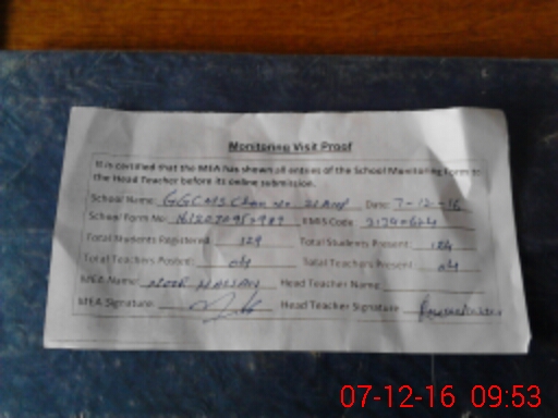 | Attendance Register | Head Teacher | MEA with School | Visit Proof |