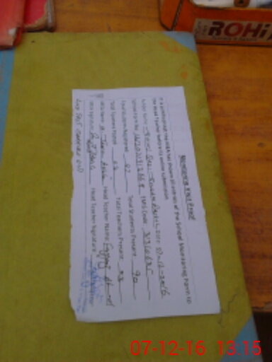 | Attendance Register | Head Teacher | MEA with School | Visit Proof |