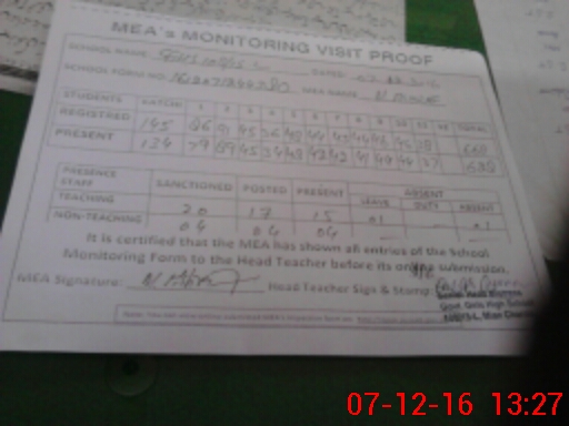 | Attendance Register | Head Teacher | MEA with School | Visit Proof |