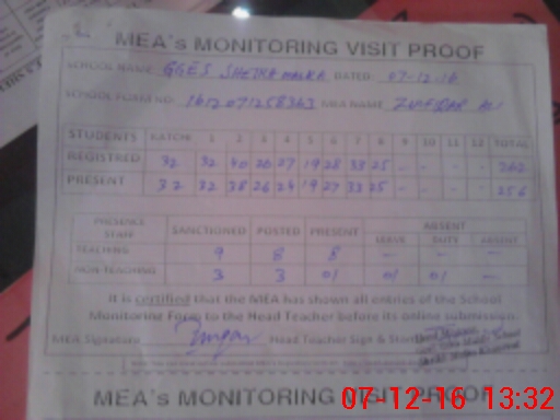 | Certified that this School was Inspected by the Undersigned MEA/DMO Today and the Information Stated Above is as Per Record. | |||||