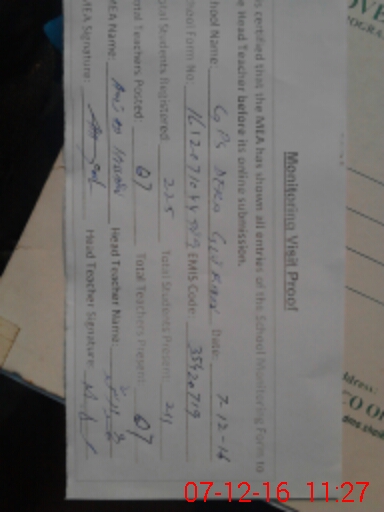 | EMIS Code: 35420719 | Name of School: GPS DERA GUJRAN | |||