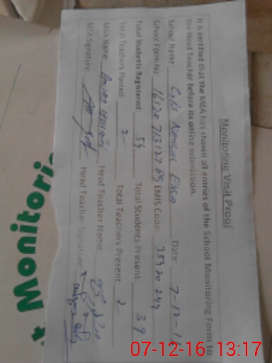 | Certified that this School was Inspected by the Undersigned MEA/DMO Today and the Information Stated Above is as Per Record. | |||||