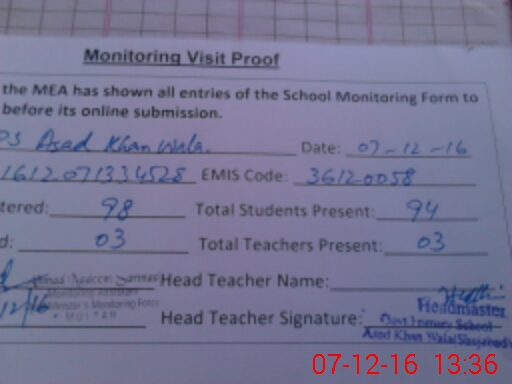 | EMIS Code: 36120058 | Name of School: GPS ASAD KHAN WALA OUT SIDE CHOWTAQA GATE P/O SHUJABAD | |||