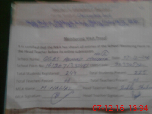 | Certified that this School was Inspected by the Undersigned MEA/DMO Today and the Information Stated Above is as Per Record. | |||||
