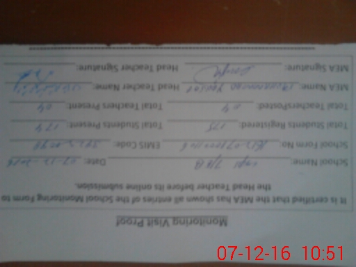 | Certified that this School was Inspected by the Undersigned MEA/DMO Today and the Information Stated Above is as Per Record. | |||||