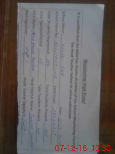 | Certified that this School was Inspected by the Undersigned MEA/DMO Today and the Information Stated Above is as Per Record. | |||||