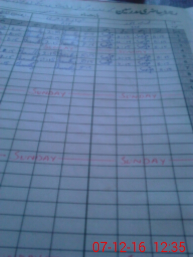 | CNIC | Full Name | Designation | R/C | Absence During Last Calender Month |