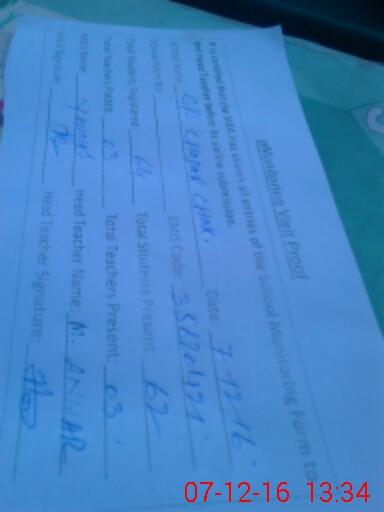 | Attendance Register | Head Teacher | MEA with School | Visit Proof |