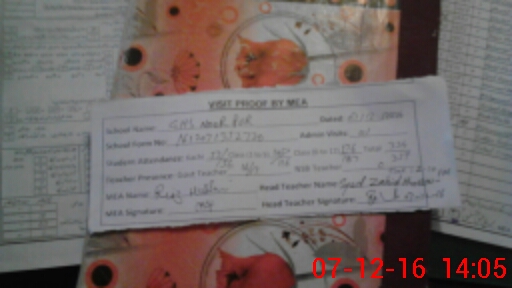 | Attendance Register | Head Teacher | MEA with School | Visit Proof |