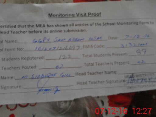 | EMIS Code: 31321001 | Name of School: GGPS JAM AKRAM SOJHAL | |||