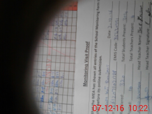 | Attendance Register | Head Teacher | MEA with School | Visit Proof |