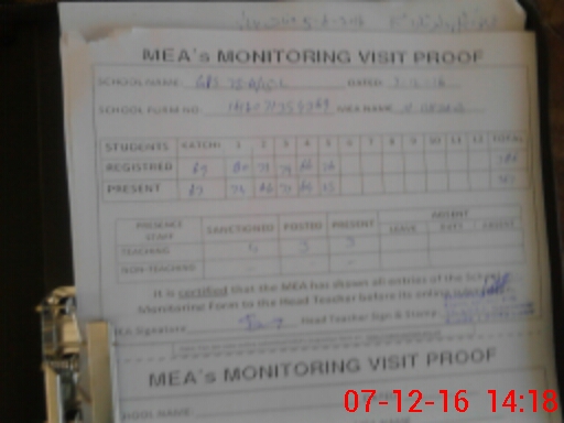 | Attendance Register | Head Teacher | MEA with School | Visit Proof |