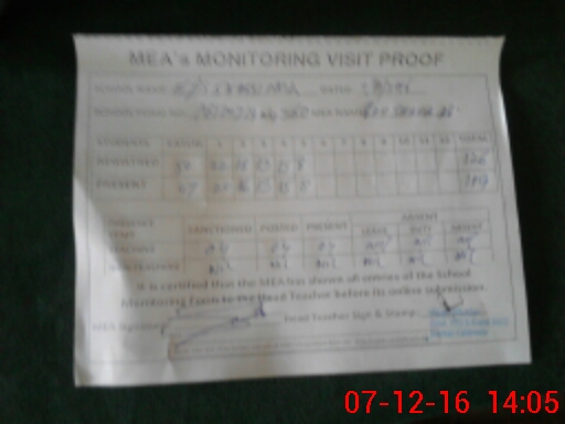| Attendance Register | Head Teacher | MEA with School | Visit Proof |