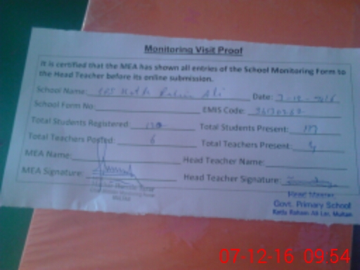 | EMIS Code: 36130262 | Name of School: GPS KOTLA RAHAM ALI LAR MULTAN | |||
