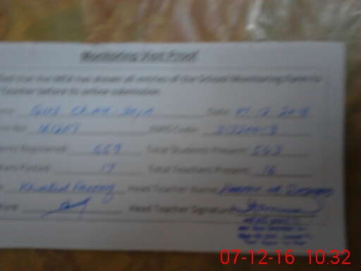 | EMIS Code: 31320013 | Name of School: GHS CHAK NO.30/A | |||