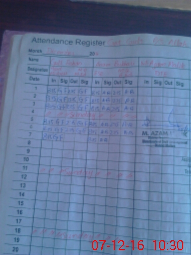 | CNIC | Full Name | Designation | R/C | Absence During Last Calender Month |
