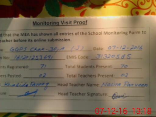 | EMIS Code: 31320485 | Name of School: GGPS CHAK NO.30/A JADEED | |||