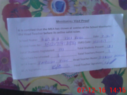 | Certified that this School was Inspected by the Undersigned MEA/DMO Today and the Information Stated Above is as Per Record. | |||||