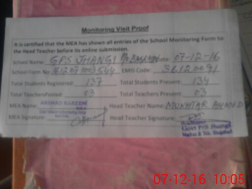 | EMIS Code: 36120091 | Name of School: GPS JHANGI P/O BAGRAIN TEH SHUJABAD | |||