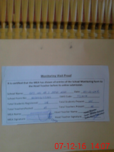 | Attendance Register | Head Teacher | MEA with School | Visit Proof |