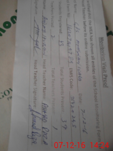| Attendance Register | Head Teacher | MEA with School | Visit Proof |