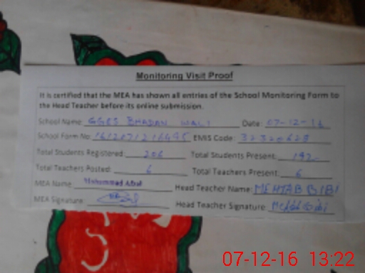 | EMIS Code: 32320628 | Name of School: GGES BHAIDAN WALI | |||